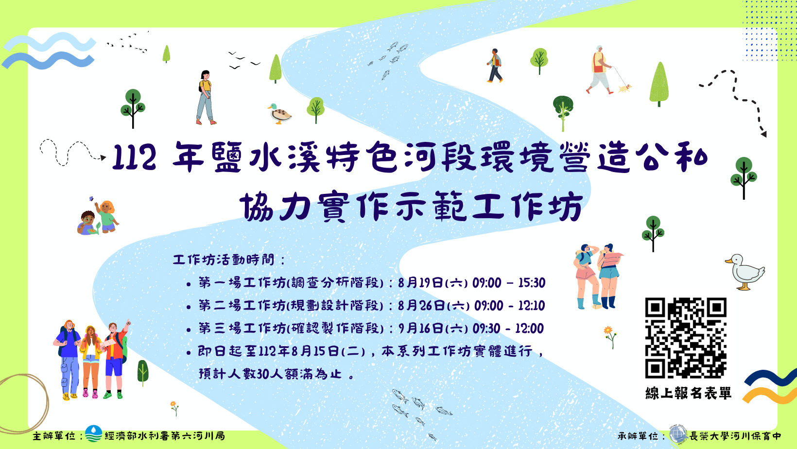 - 報名時間:即日起至112年8月15日(二),本系列實體活動工作坊預計30名,額滿為止,報名成功將會E-mail進行通知通知。